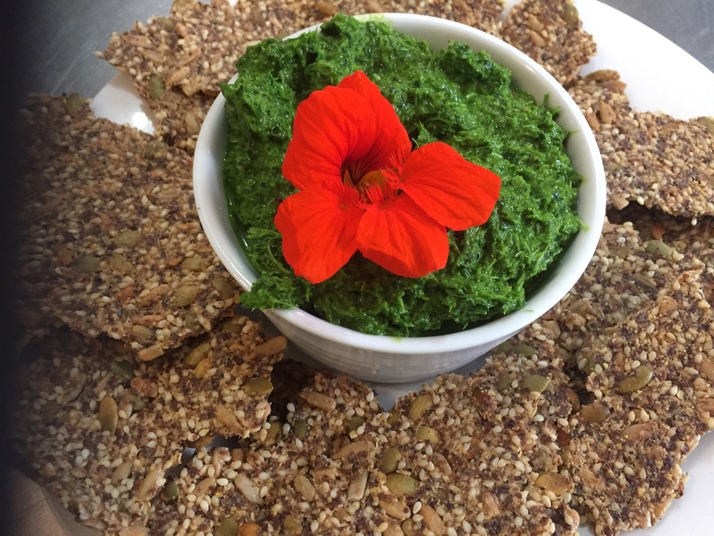 One of my favourite things to do in the kitchen is to whip up a quick green dip or weedy garden pesto using whatever tasty greens are most abundant.