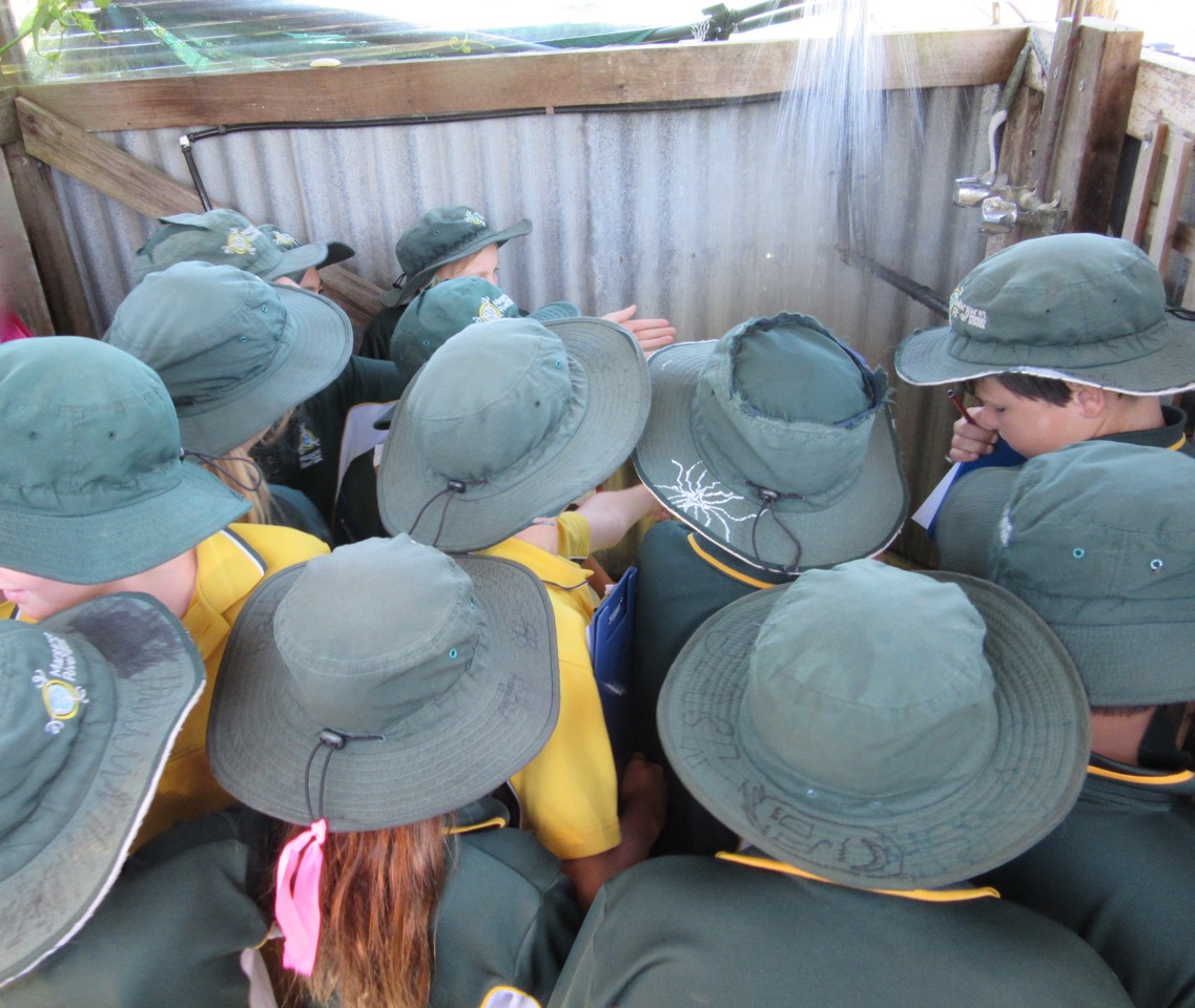 Local school children testing the water temperature It is an absolute joy standing under a warm shower knowing you are participating in the energy and compost cycle and watching the run off flowing onto the citrus.