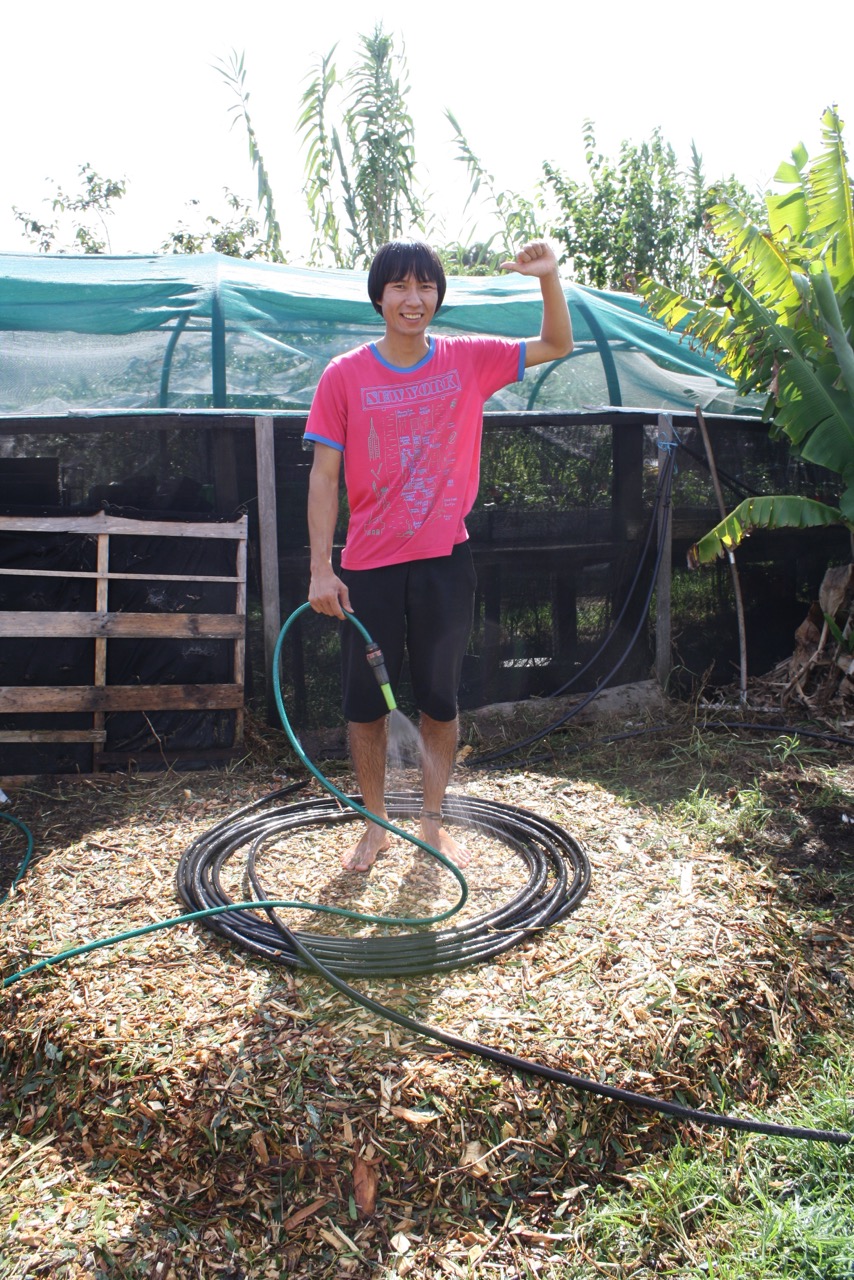 This system is one that works with our particular environment as we live in a high fire risk area and need to keep the many trees we have planted (especially acacias) maintained for fire risk. Cutting and mulching branches provides the multi function of;