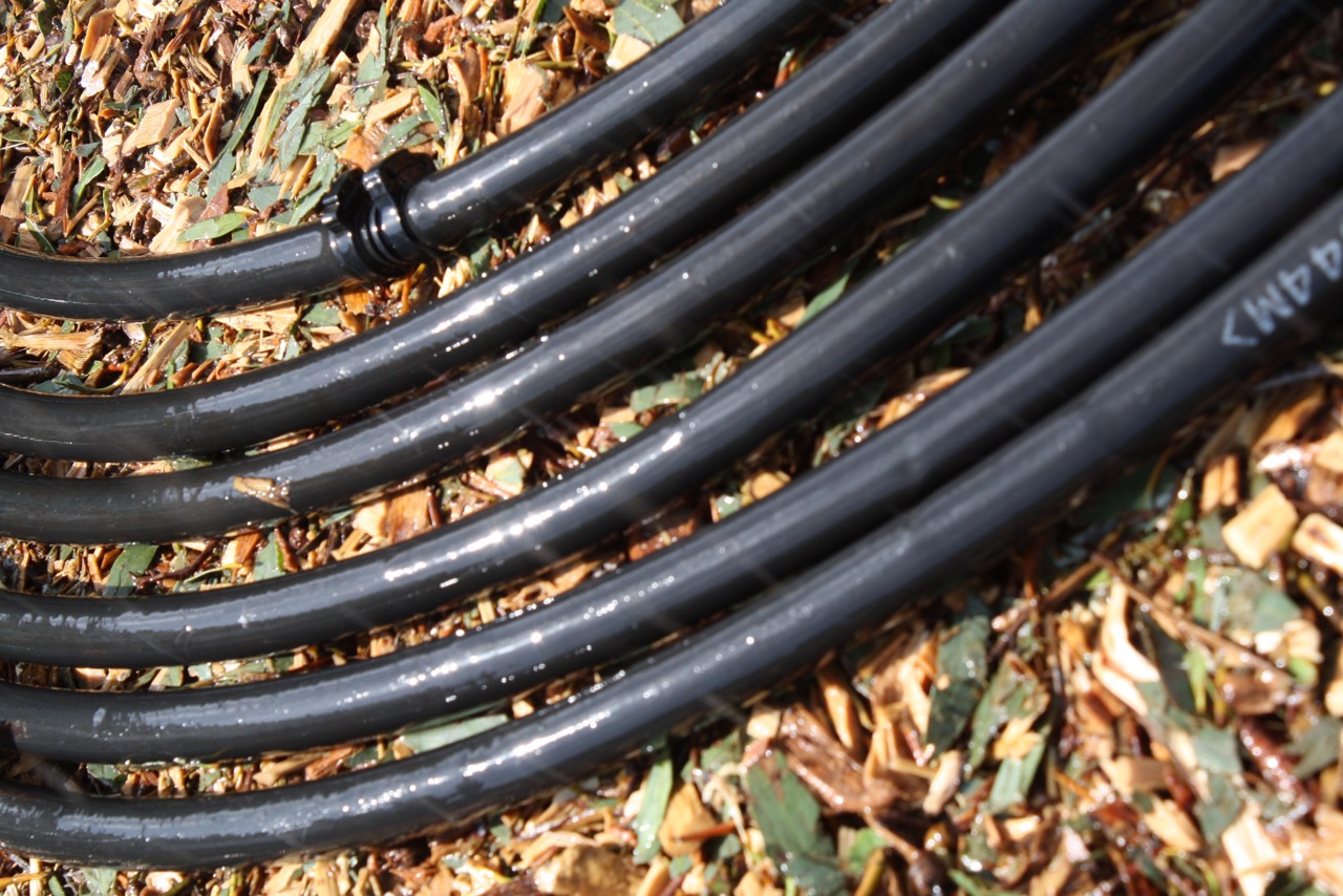 as not to get spiked by the thermometer later. Also don’t let the pipe get too close to the edge as it should be well insulated(see the photo below for our first layer). Be careful not to kink or cross the pipe as undoing the pile later to find a problem is not desirable.