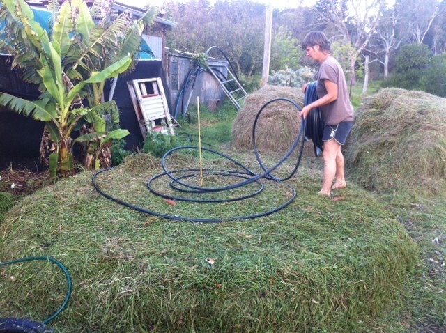 - a couple of willing helpersBasically you will be creating a large anaerobic compost heap in between your water supply and your shower. We have enough room to create a second compost and valves that can switch from one to the other, this works well as when one starts cooling down we can switch to the other.It is important to give the process plenty of time as to create the right anaerobic conditions you need to create a moist, compact environment so set aside a couple of days and invite some friends over to help.