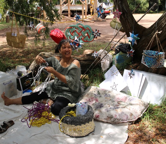 Cynamon Aeria has been a part of nearly every festival we have had. Setting up under the trees and welcoming people to join her in her latest weaving activities. This year Cynamon was weaving out of recycled paper.