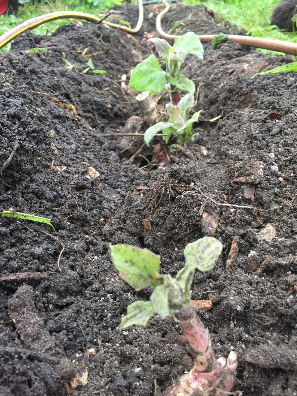 We add a drip irrigation line on either side of the plants as they will spread and produce abundant tubers.