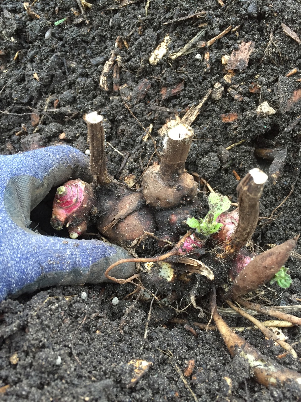 Remove all the edible tubers for eating and storage (if they are left in the ground too long they may start to rot).