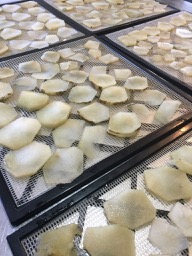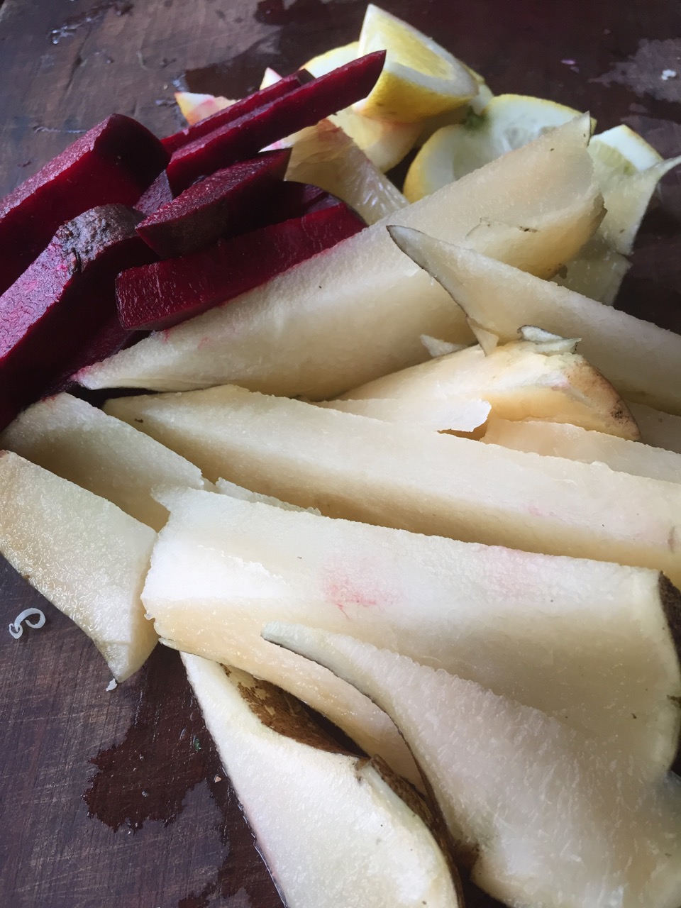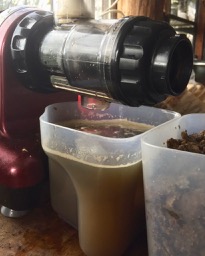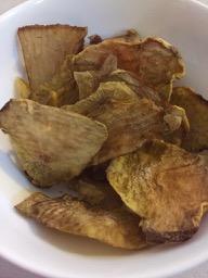After scrubbing the tubers to get quite a bit of the outer skin and all the dirt off, I roughly chopped them so that the clean pieces could go in the drier and everything else went through the juicer.