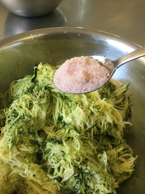 Grate them by hand or with your favourite grating machine, add salt and set aside for a couple of hours.